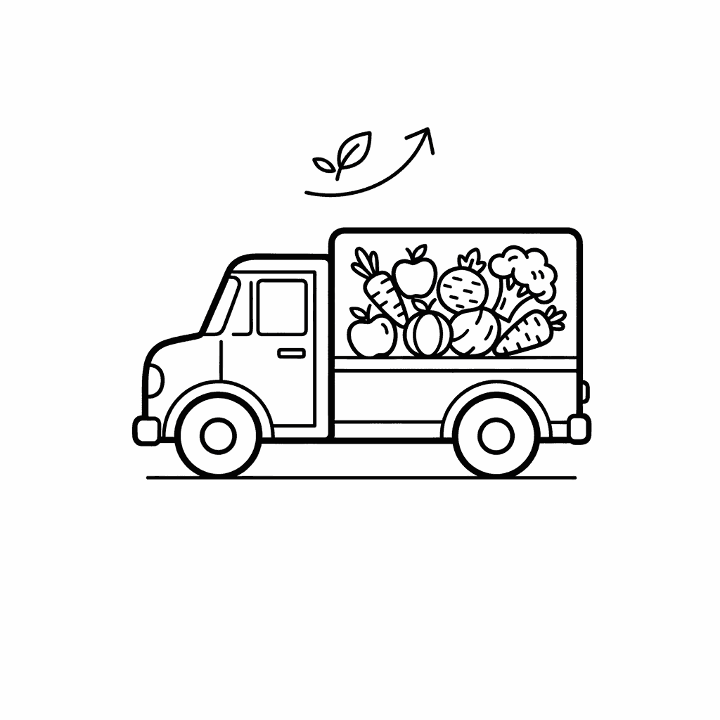 Vos produits voyagent dans le même camion qui approvisionne la cantine de l'école. 0 kilomètre ajouté, 100% de fraîcheur.